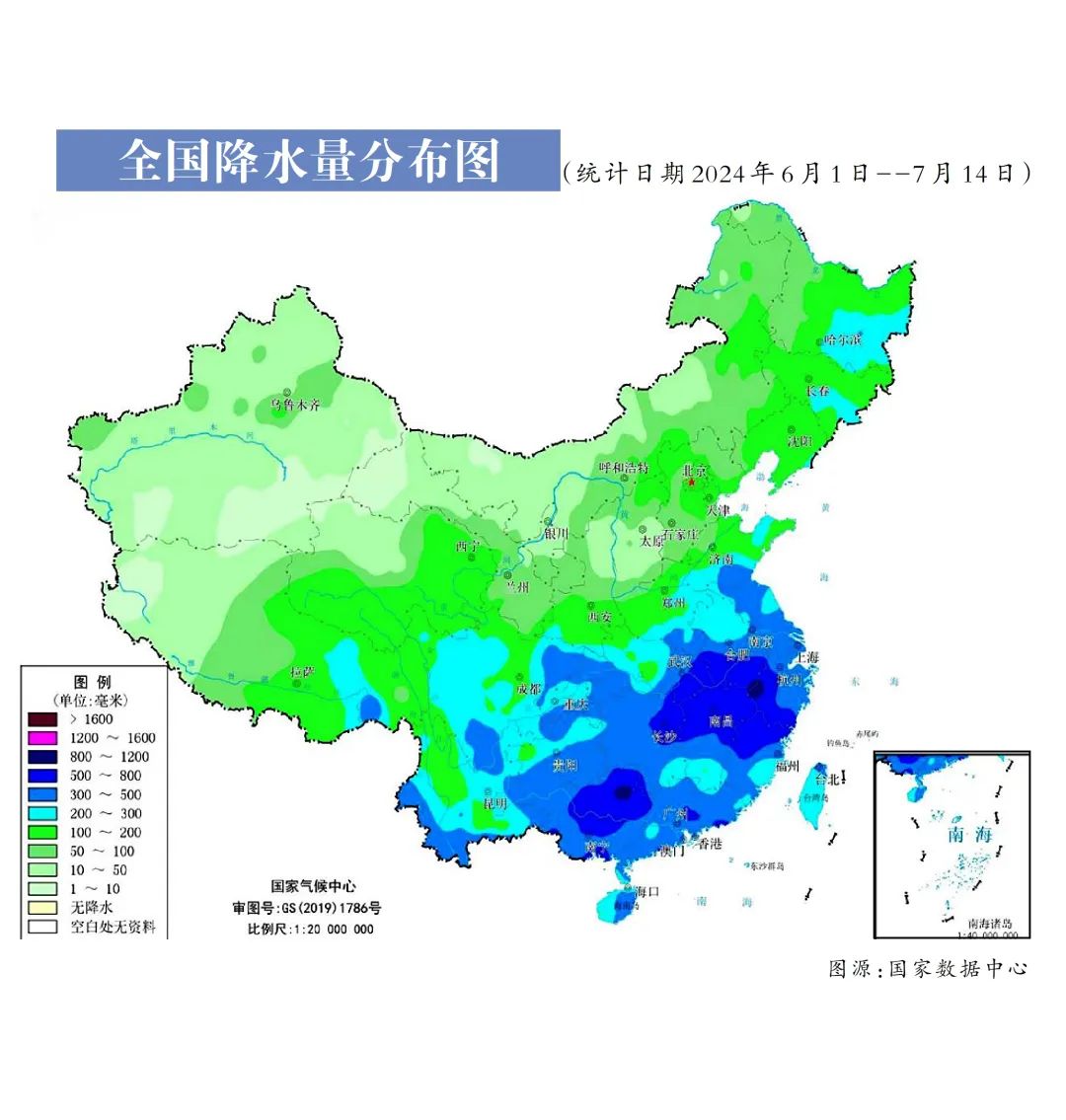 今年上半年我国共出现19轮暴雨天气过程,长江以南大部降雨偏多。统计数据显示,长江以南地区6月的累计降雨量普遍达到300—500毫米。其中,广东海丰降雨最多,累计降雨量高达2332.6毫米,广西防城港市防城区以14个暴雨日成为暴雨最频繁的地方。